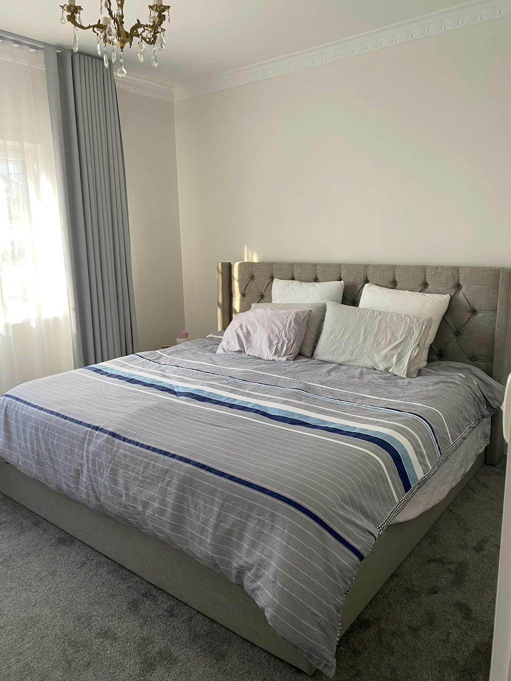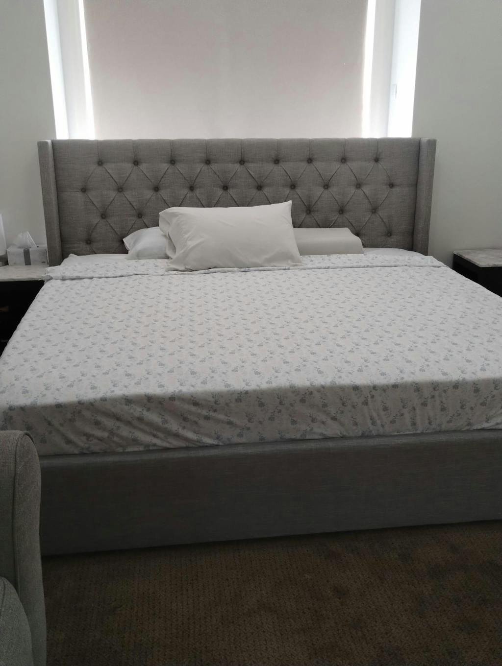 • Tufted Premium Linen Upholstery – Upholstered in tufted cushioned light grey linen, delivering a rich Chesterfield designer look of sophistication and ultimate comfort to your bedroom.